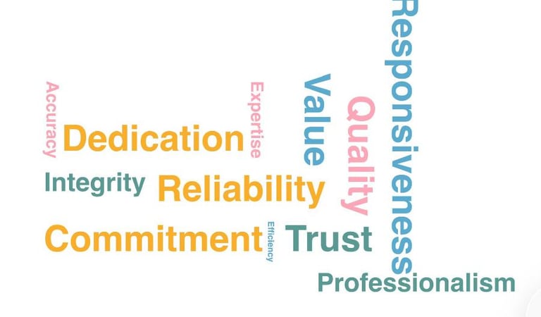 Our business is built on a foundation of Integrity, ensuring that every interaction is honest and transparent. We pride ourselves on our Expertise and Reliability, delivering high-quality consultancy services with Efficiency and Accuracy. Trust and Professionalism are at the core of our operations, fostering strong, dependable relationships with our clients. We are committed to providing exceptional value through our Dedication and Responsiveness, ensuring that every client's needs are met with the utmost care and attention.